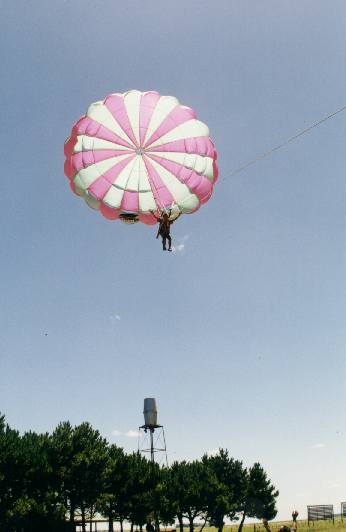 | En PLAYA QUERANDI, obtenga su bautismo de vuelo en para-sail, atrapante actividad para los mas aventurados, unido por una cuerda a un vehiculo de remolque, sienta la sensacion increible de poder volar, aunque sea por unos minutos. |